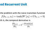 이번 수업은 마지막으로, 다시 한번 더, GRU 를 뽀개버리는 수업이었다. 1. 왜 GRU 를 쓰지? 우선 왜 GRU 가 등장했는지를 알기 위해서는 기존에 있던 RNN 의 단점을 알아야 한다. 위의 이미지에 등장하는 수식은 을 구하는 방법으로, 즉 current hidden state 를 업데이트 하기 위한 수식이다. 수식을 간단하게 설명하자면, current step 에서의 input인 x 와, previous hidden state 에 각각 가중치를 곱하고 이 둘을 더한다. 여기에 bias 를 더한 다음 tanh 을 씌워서 -1 과 1 사이의 값을 반환하는 식이다. 이때 주목해야 할 것은 previous hidden state 에 weight matrix U를 곱했다는 점. 이런 식으로 weight ..