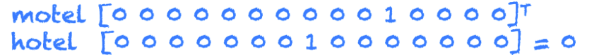 위의 그림과 같이 의미가 유사한 motel 과 hotel 의 one-hot vector 의 dot product 는 0이된다. 이러한 representation 을 통해서는 단어관의 관계를 표현할 수가 없다.