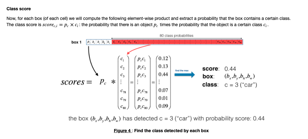여기서 1) 번 하기 위해서 score 를 구해야 하는데 각 box 의 score 는 아래와 같이 구할 수 있음.