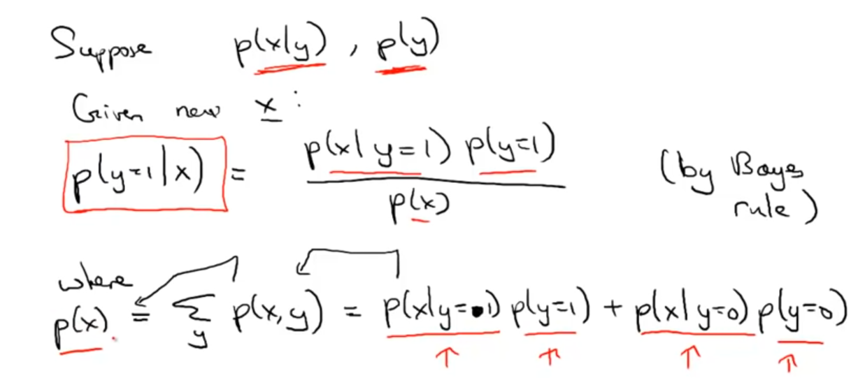 Bayes rules 에 의해서 generative model 이 배우는 $P(x|y)$ 를 가지고 classification 에 필요한 $P(y|x)$ 도출 가능함.