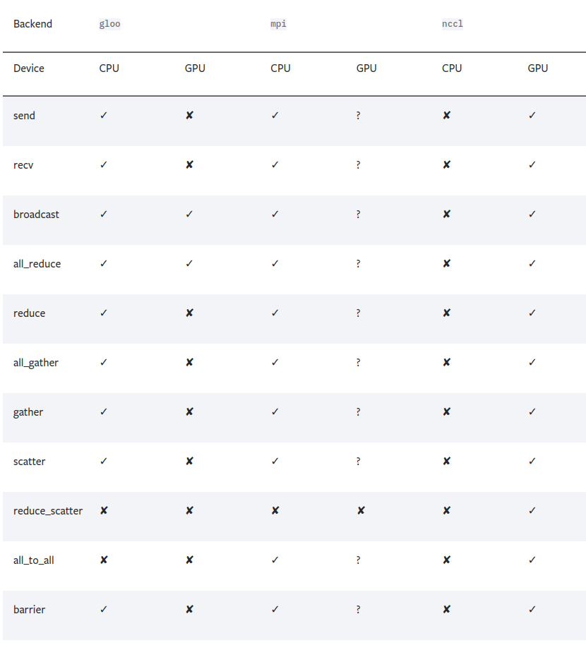 1. ddp backend 타입 별로 사용가능한 communication strategy