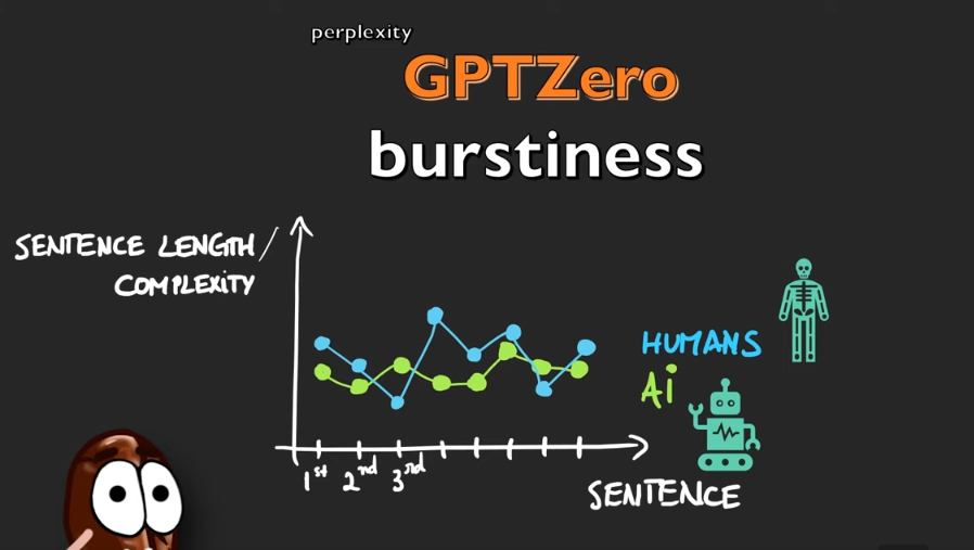 burstiness 라는 건 쓰인 문장들이 서로 얼마나 다양하냐? 정도로 해석할 수 있을 것 같은데 예를 들어서 사람이 글을 쓸 때 rare word 가 등장한다고 하자. 이 단어는 한 두번 쓰이다가 다른 문장에서는 안 쓰이기 때문에 문장 간 스타일이 매우 various 하다고 할 수 있음. 그런데 이에 비해서 LM 은 문장 들이 어느 정도 일정한 차이를 유지하기 때문에 burstiness 가 낮다.